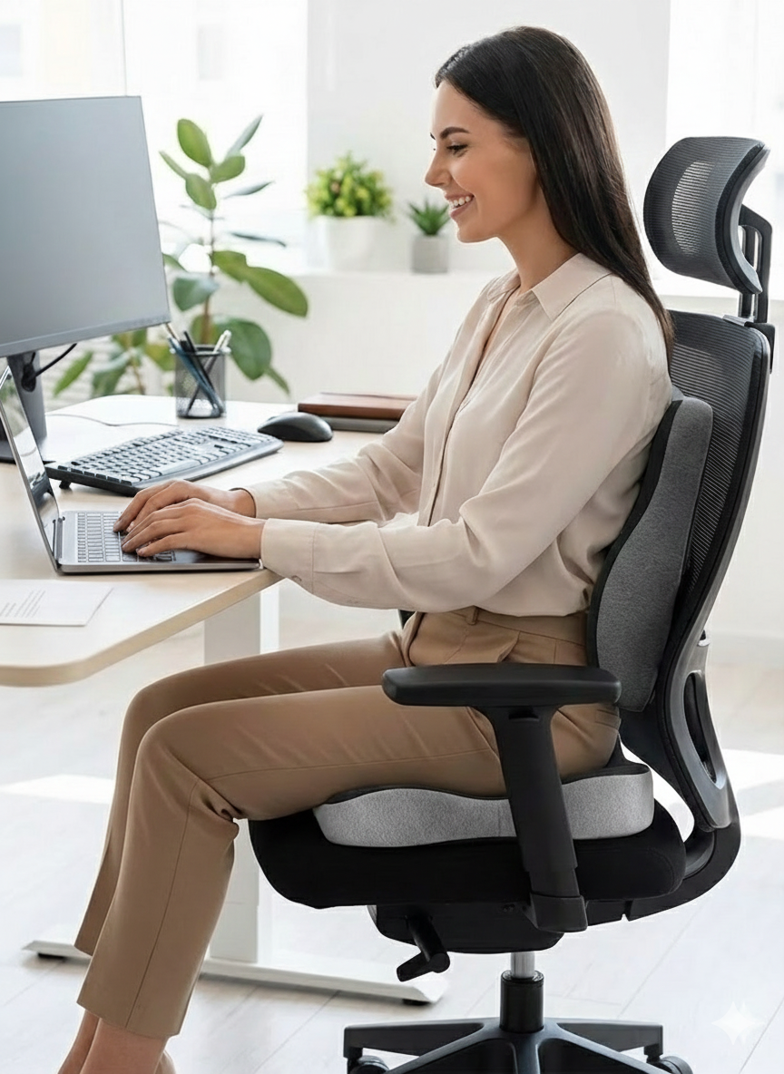This means less stress on your spine during sitting, helping prevent the discomfort that leads to back pain.